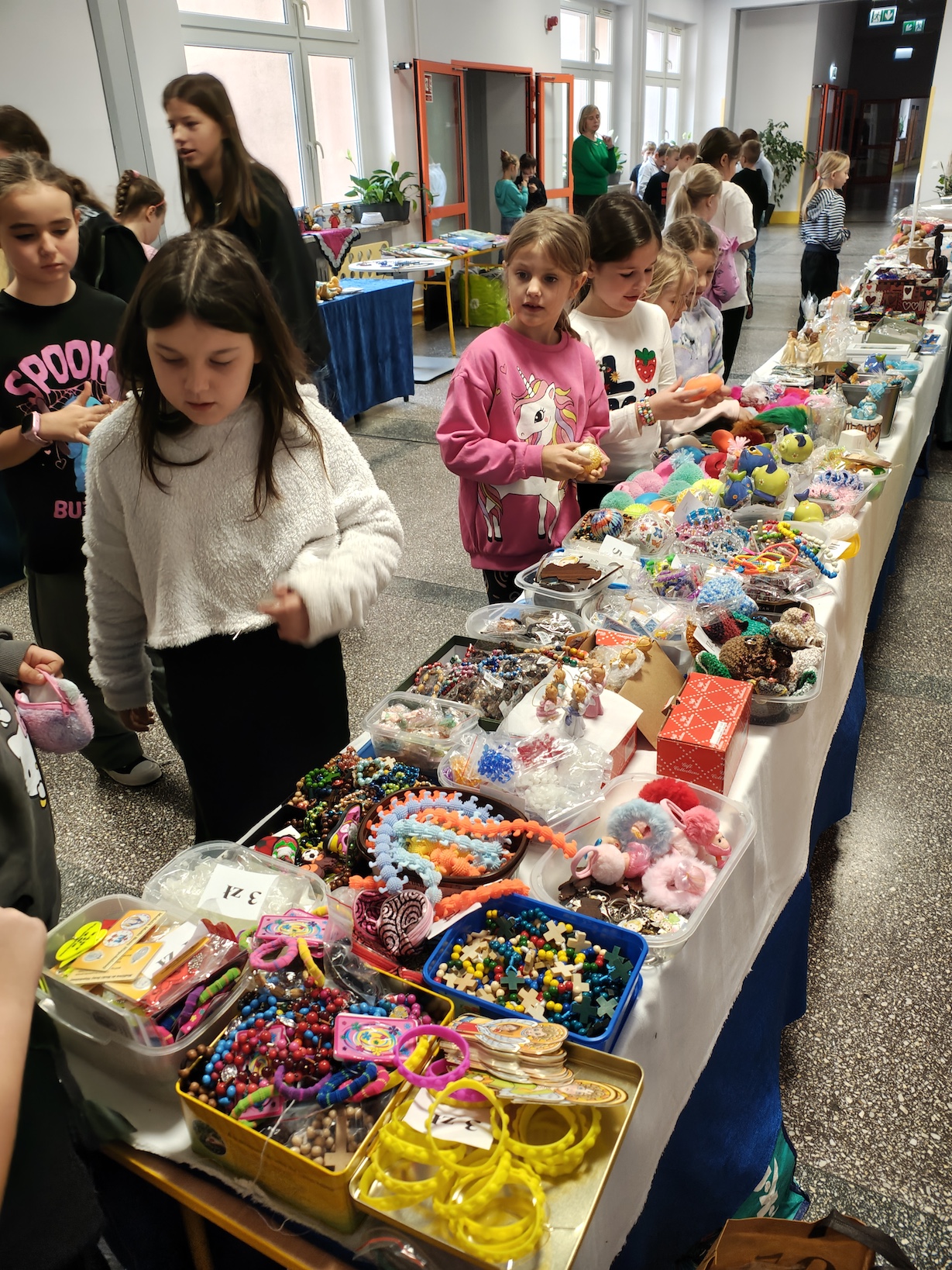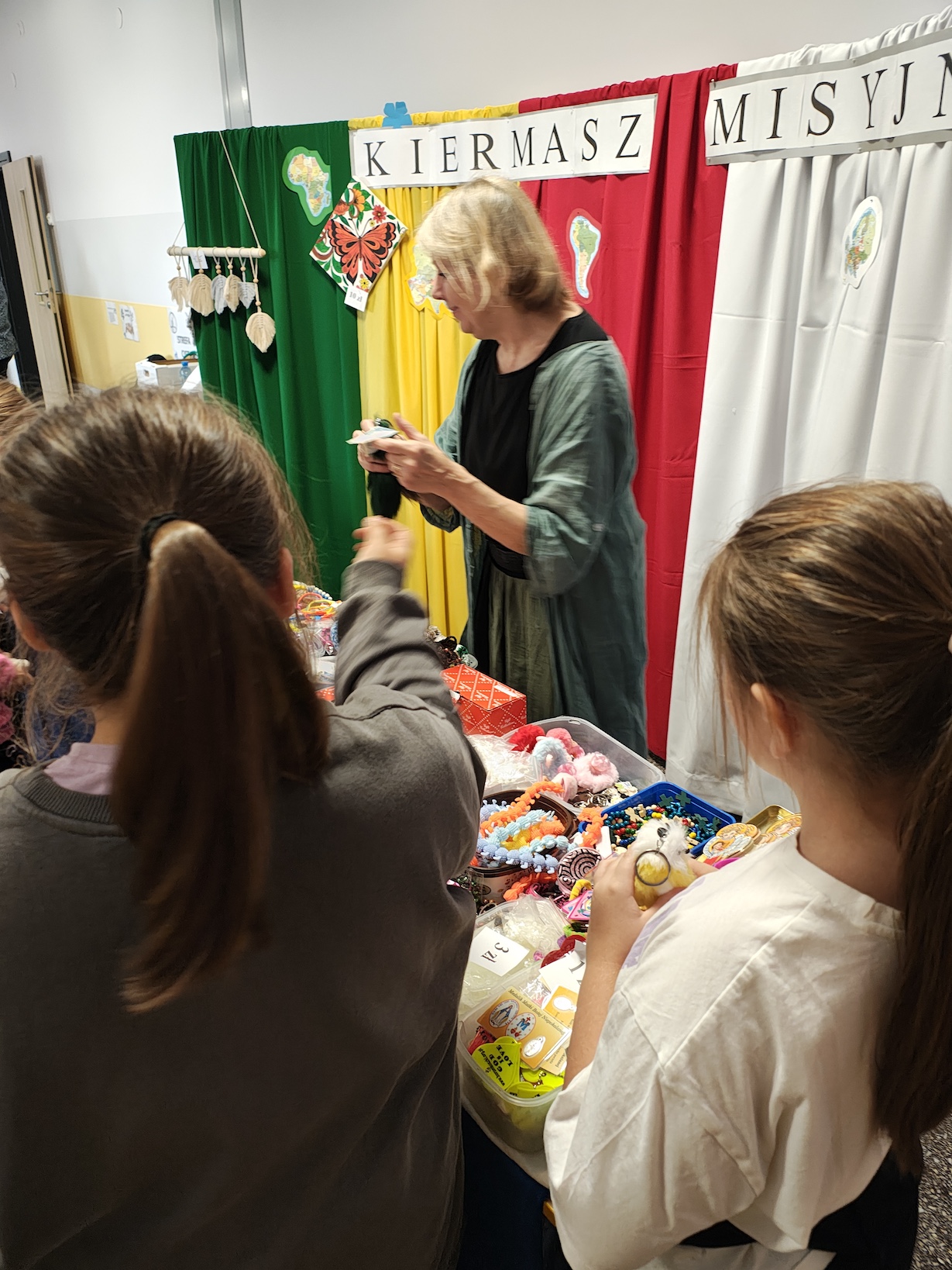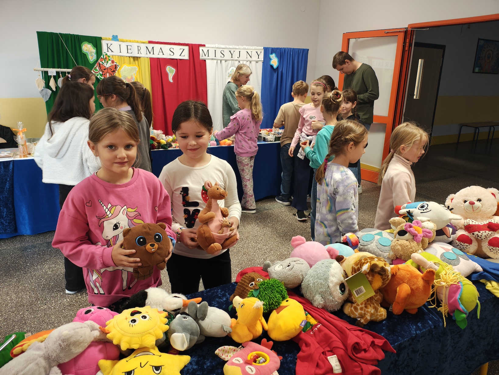 Nadszedł czas, by w Jej imieniu podziękować wszystkim, którzy przyczynili się do realizacji i powodzenia tego przedsięwzięcia. Dziękujemy Dyrekcji Szkoły za umożliwienie przeprowadzenia tej akcji, wszystkim współorganizatorom – Przyjaciołom Misji, którzy dzielnie przez te trzy dni obsługiwali kiermasz, rodzicom, i oczywiście wszystkim kupującym nauczycielom, pracownikom szkoły oraz dzieciom za ich otwarte, ofiarne serce. Dziękujemy za wszystkie podarowane na ten cel galaretki, pluszaki, ciasta, ciasteczka i kolorowe gadżety.